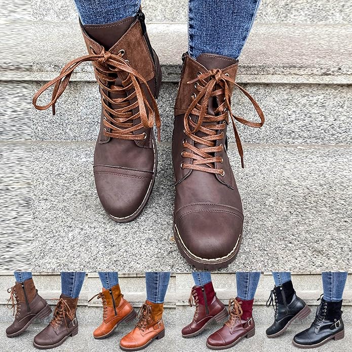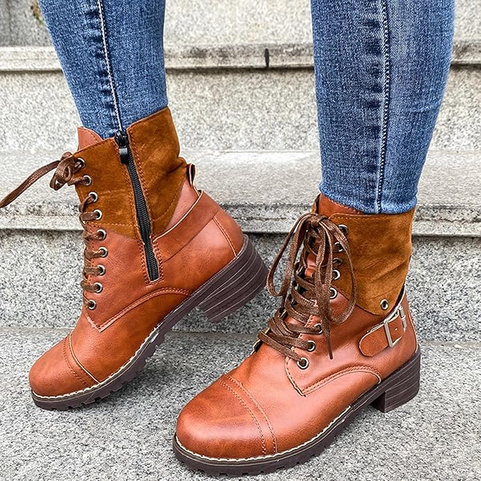 Women’s Chelsea Combat Booties Fashion Side Zipper Buckle Knight Boots Casual Platform Block Heel Ankle Boots